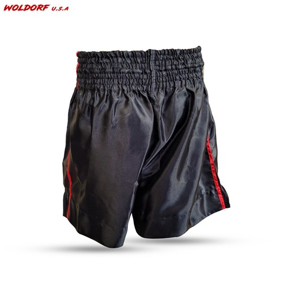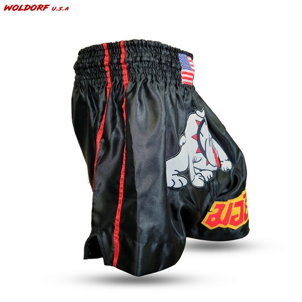 Muay thai shorts in heavy silk satin with embroidered bull dog.