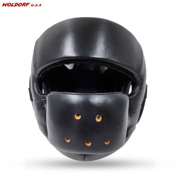 Cowhide leather Head guards with metal padded bar for extra protection for face