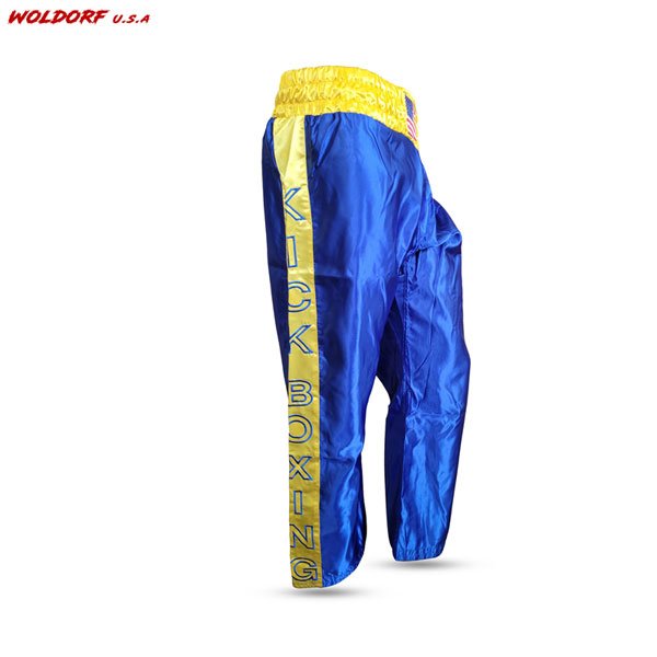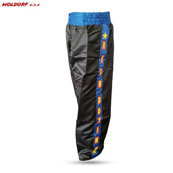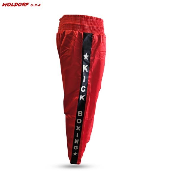 - Traditional polyester satin pants for kickboxing.