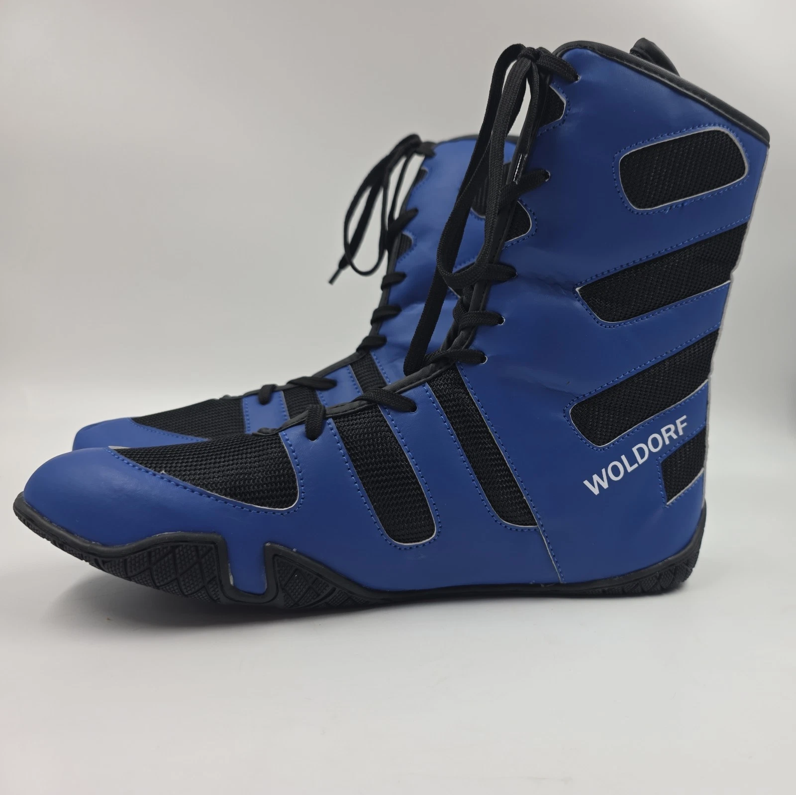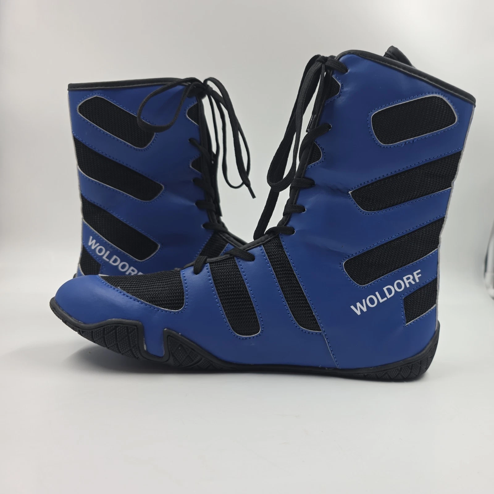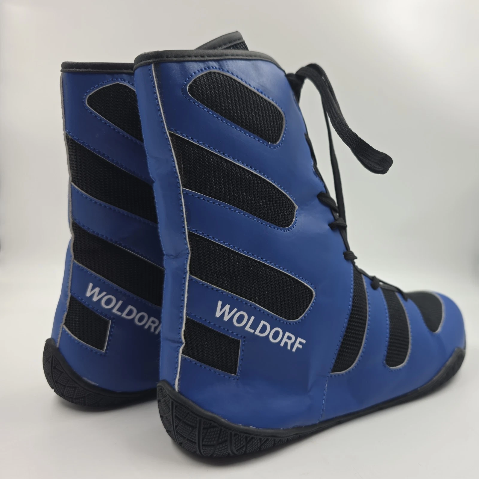 The textured rubber outsole delivers strong grip and traction on multiple surfaces, making these boots ideal for boxing, wrestling, MMA training, weightlifting, and functional fitness. With a bold blue-and-black design and modern athletic styling, WOLDORF boots combine performance, comfort, and standout looks for serious athletes.