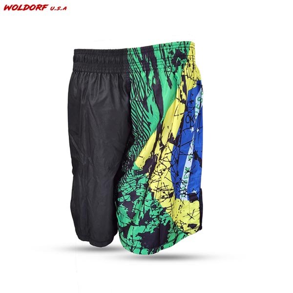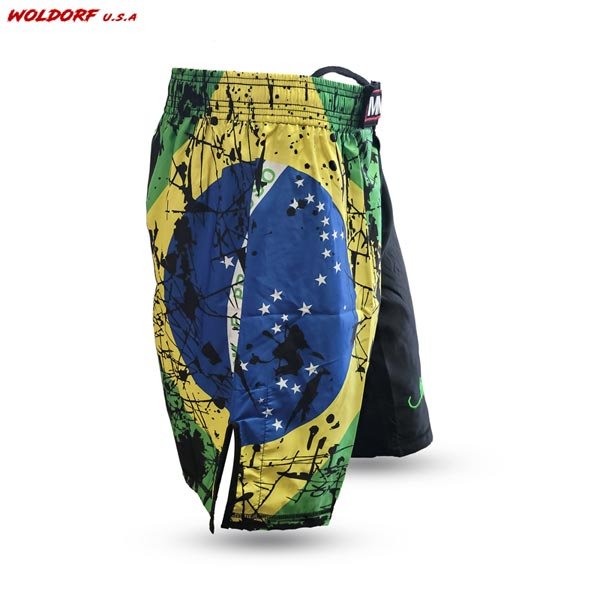 MMA shorts in polyester Brazilian flag on side in high quality fabric for mma training kickboxing gym clothing shorts