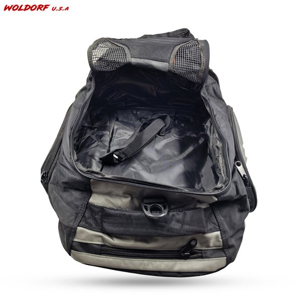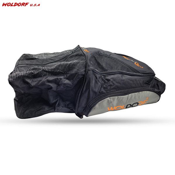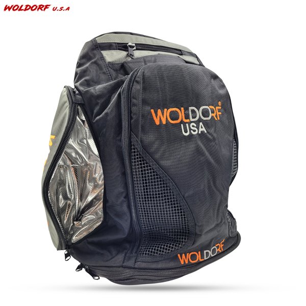 extra pockets and zippers for all your storage needs. Comes with Woldorf Logo.