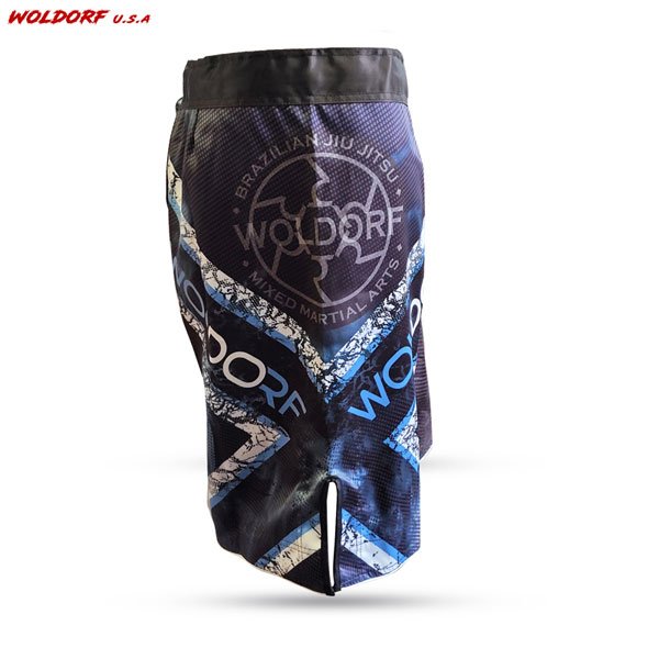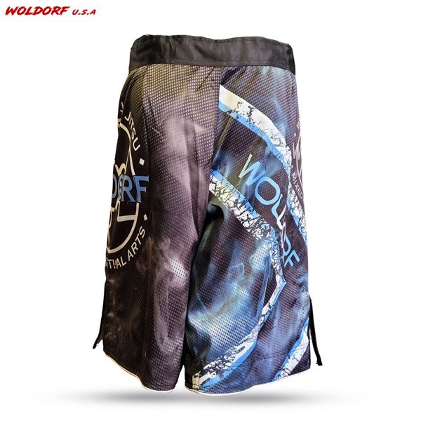 Sublimation MMA shorts polyester 100% warranty of color bleed unique smoke style. polyester trim all around, inside lycra cratch area.